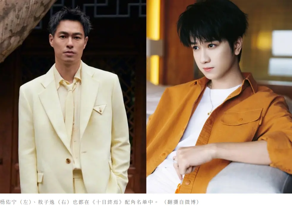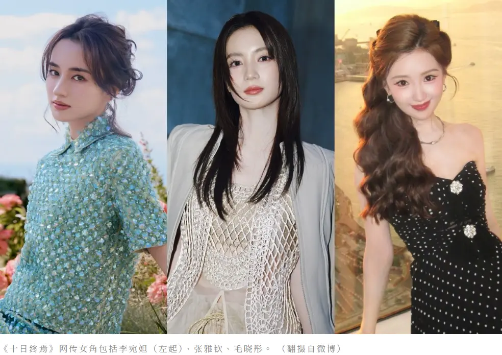 《十日终焉》女主“余念安”的人选曾传过周也、赵露思、杨超越等人。不过,由于该角色并非真实存在,只是男主在极端环境下的精神支柱,由执念具象化而成,因此戏份不多。最终,这个角色换成了咖位不大但颜值在线的“小迪丽热巴”李宛妲出演。此外,女二、女三分别由张雅钦、毛晓彤出演。其他角色还有台湾男星杨祐宁,传闻将饰演解放被困者的核心角色“李尚武”;曾出演《折腰》《水龙吟》走红的男配敖子逸也被找来助阵,饰演的角色仍需等待官宣。